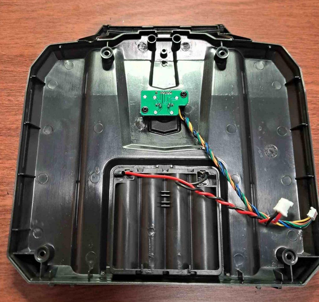 En la cara opuesta a la descrita anteriormente hay un pequeño pulsador que sirve para emparejar el receptor con nuestro emisor. Es importante soldar los conectores desde esta cara, tal y como se puede apreciar en las imágenes, porque si lo hacemos al revés, el acceso al interruptor es peor.